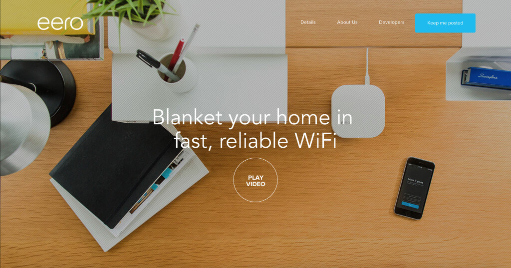 Wifi system eero uses gorgeous photography to showcase its beautiful product in the context of the home.