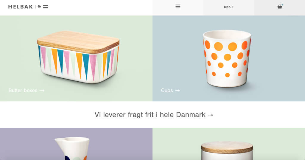 Danish ceramist Malene Helbak’s ecommerce website shares her products’ fresh color palette and minimalist design sensibility for a very clean and open look.