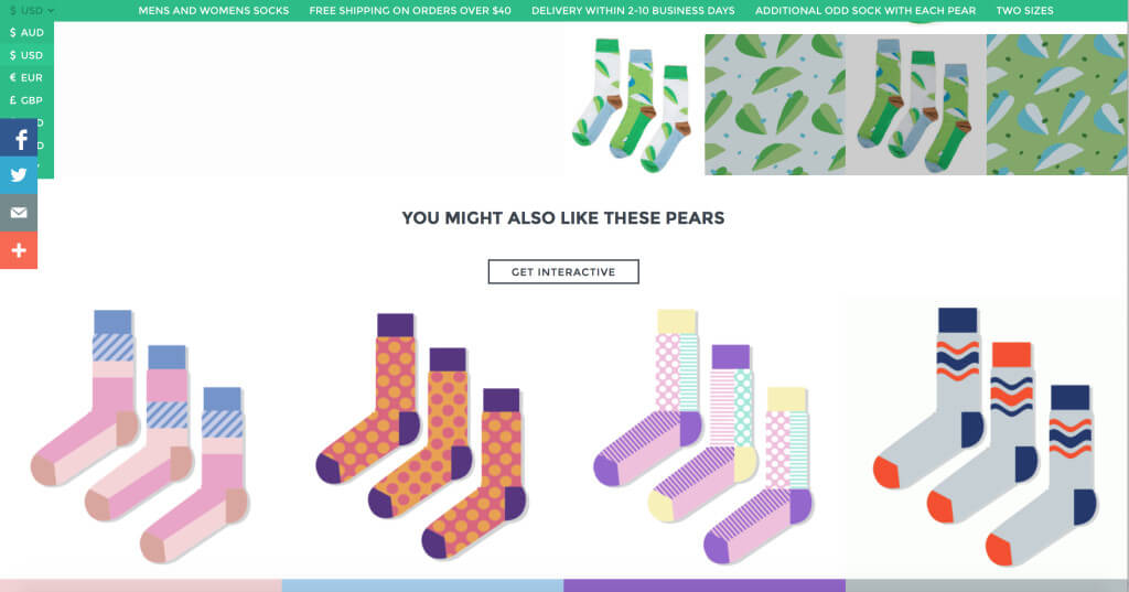 Odd Pears offers a fun interactive system to provide recommendations to go with any set of socks viewed by the customer.