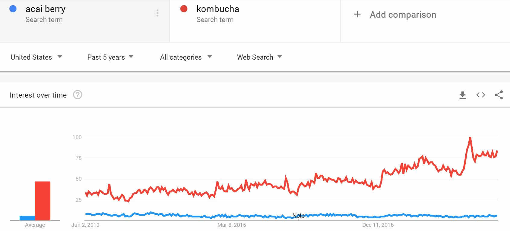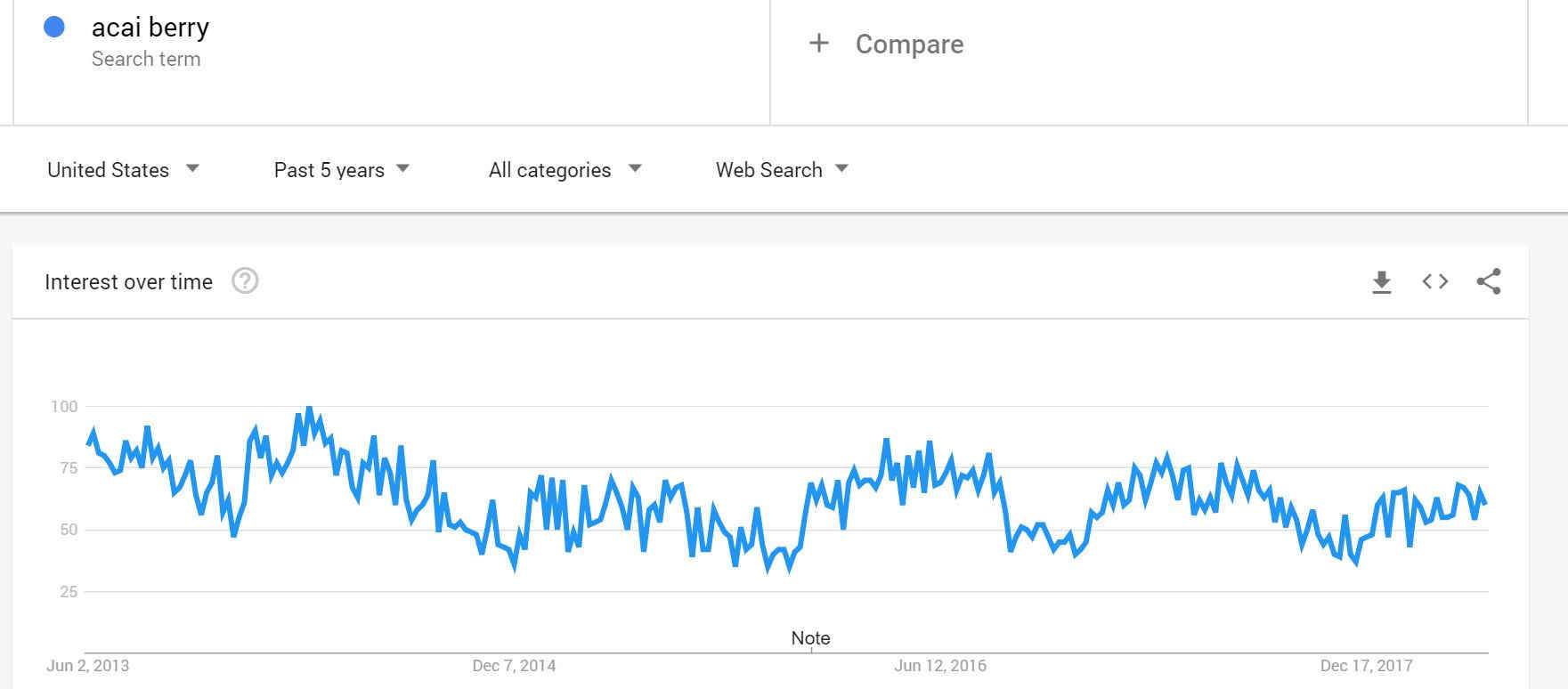 Now, if you look at this graph I’ve got here, you’ll see that interest in acai berries is waning.