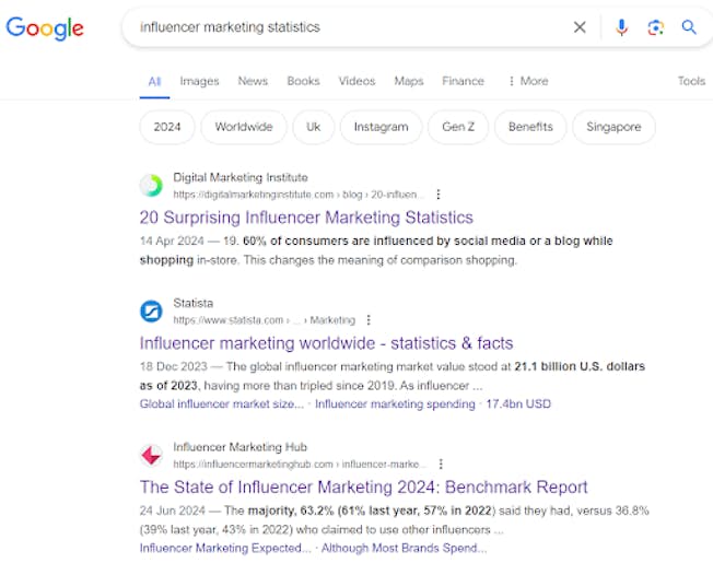 For example, we recently updated a top performing blog on influencer statistics that had slipped down the rankings. By updating the content with new information and statistics, the blog now takes the top spot on Google.