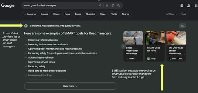 Then came Google’s Search Generative Experience which is a key visual change to SERPs. This uses AI to generate detailed search results that give users the exact information they’re looking for - e.g. featured snippets on steroids!