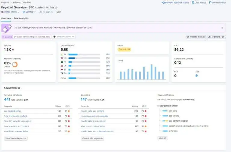 With the help of keyword tools, SEO professionals can see the volume of searches each keyword receives and how difficult it is to rank against competitors.