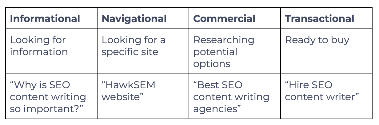 Search intent is the reason behind a user’s query, and can help you create content that fulfills their needs. There are four types of search intent to consider: