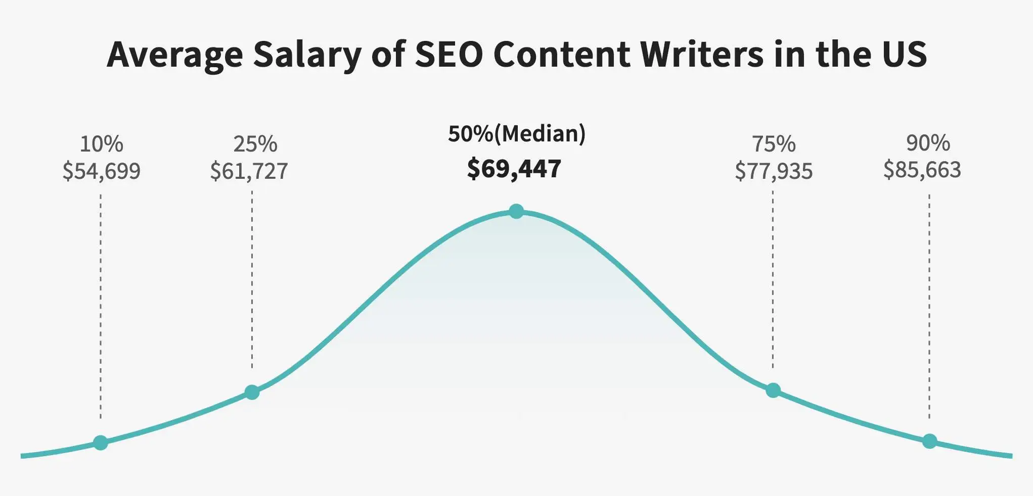 As you can expect, SEO content writers are in high demand. According to salary.com, the average SEO writer’s salary in the U.S. is $69,447, and the best writers can earn up to $85,663.