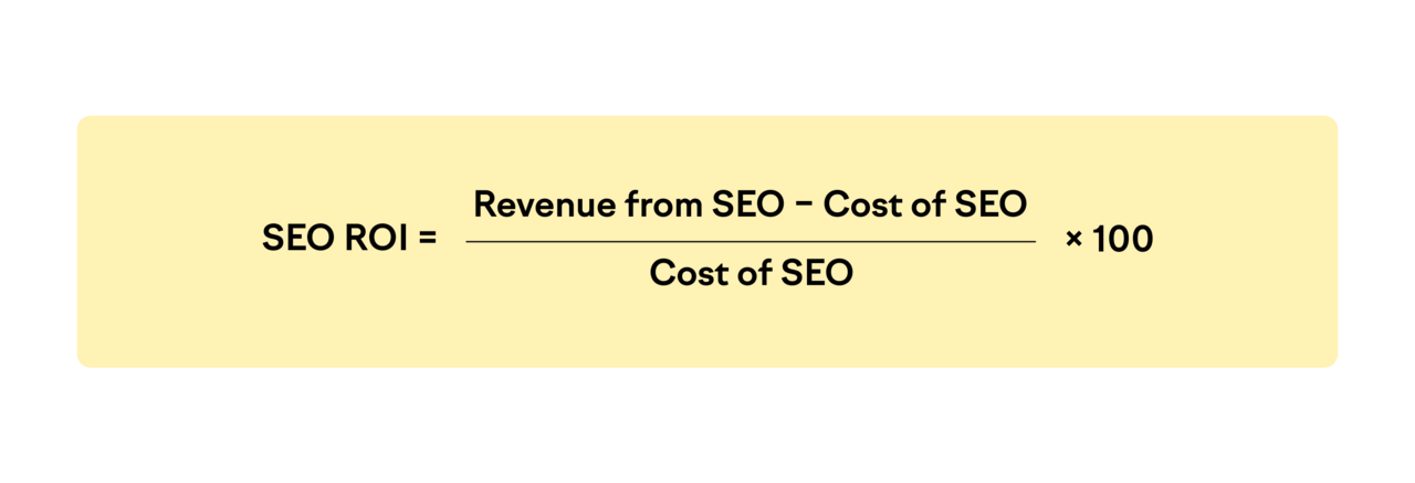 Use this formula to calculate ROI: (Revenue from SEO - Cost of SEO / Cost of SEO) x 100.