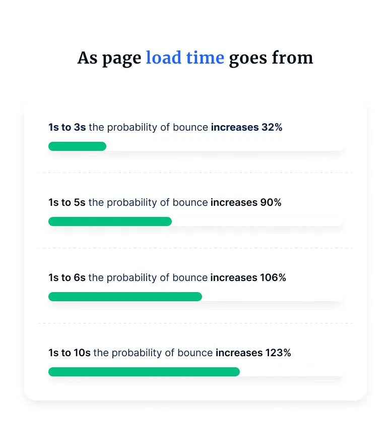 Website loading time impacts your search engine ranking. Hence, a slow loading time of your website will negatively impact your website ranking and result in higher bounce rates.