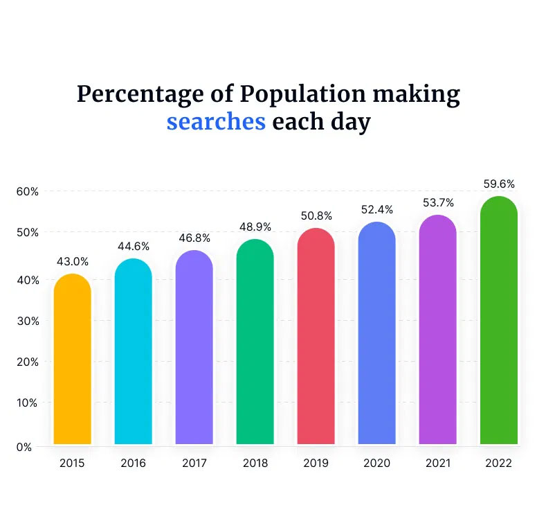 The graph below illustrates the rapid increase in online searches, highlighting the growing importance of staying at the forefront of customers' minds.