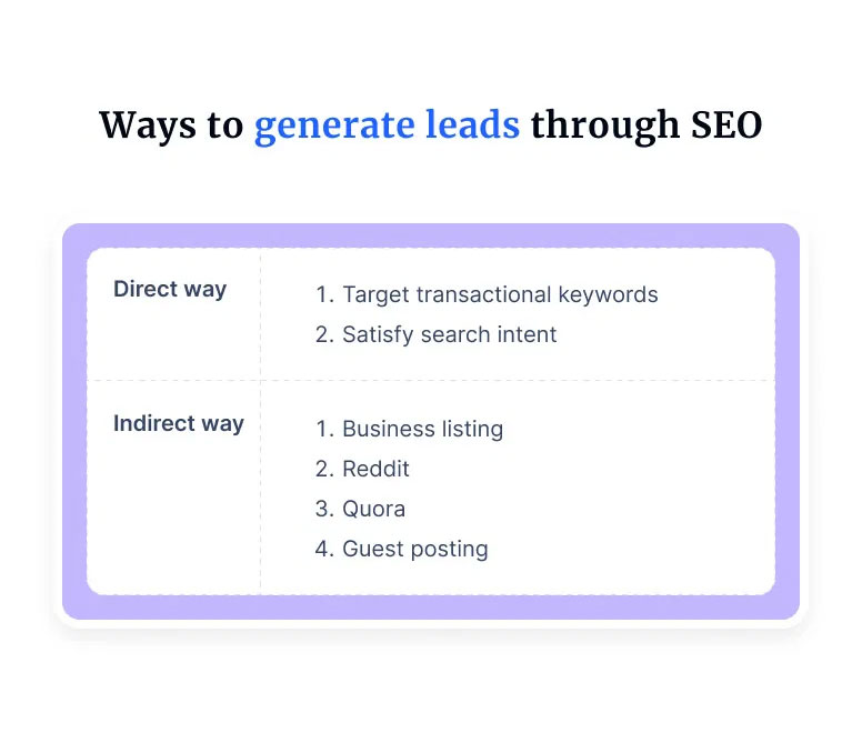 Indirect way: It helps generate SEO leads through various platforms by synergizing with the different marketing channels.