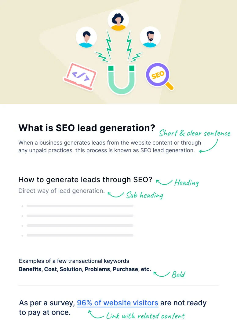 SEO content will boost the chances of lead generation as you can serve the right content in front of the right audience.
