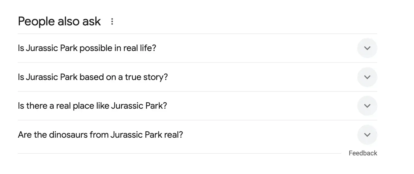 I asked Google, “is Jurassic Park real,” and here are some related common search terms, heaven help us: