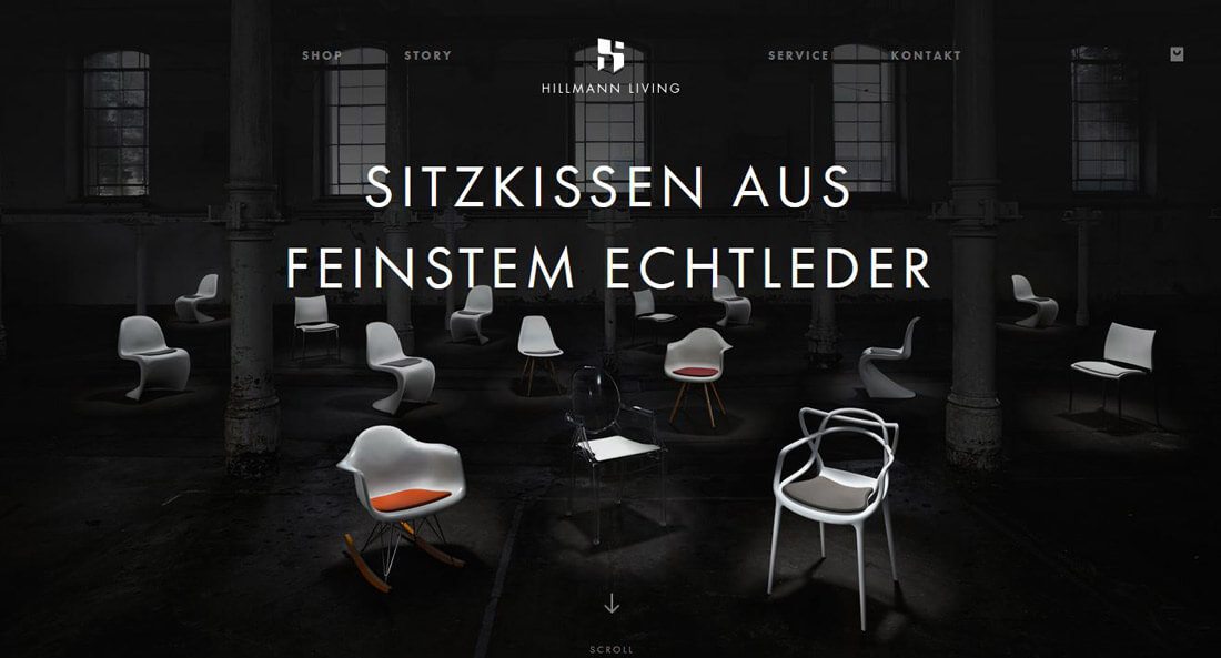 Hillman Living uses a stark image with little bits of intentional color to grab your attention and help users focus on the chairs in the image. (That’s what they are selling.)