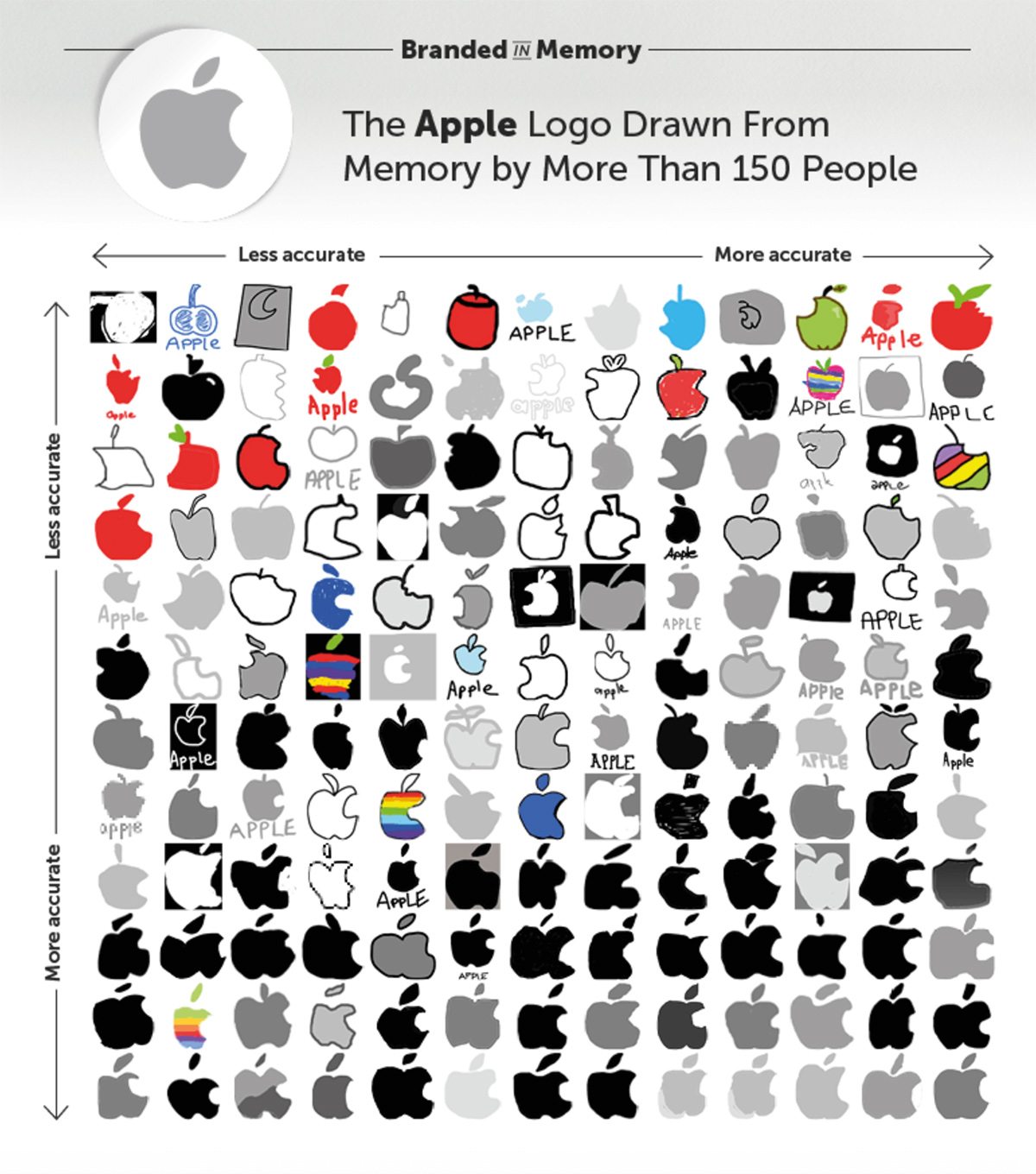 It lead to a collection of over 1,500 drawings created over a period of 80 hours. And the results aren’t what you might expect. These brands certainly aren’t stamped perfectly in our minds — they’re surprisingly fuzzy! Here’s an example of how people fared with the Apple logo, but be sure to take a look at all the other brands involved as well. The results are fascinating!