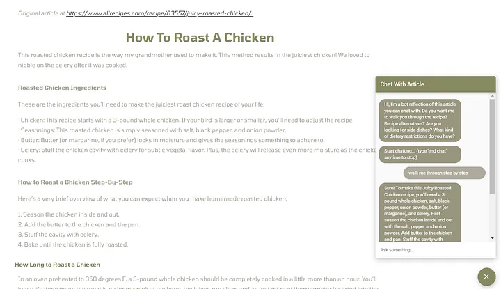 Every blog, company website, and media publisher has content that visitors can “chat with” instead of having to read everything on the page. One example is a recipe article that gives all the content at once, when what you need is step-by-step instructions from an assistant who knows the recipe well.